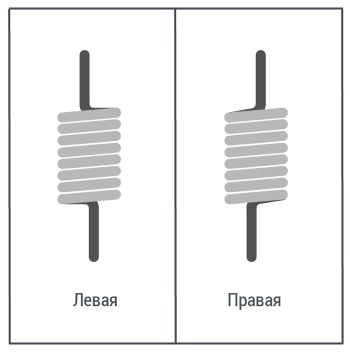 Пружины кручения имеют множество видов, их отличает направление навивки, правое или левое, форма и ориентация зацепов.
