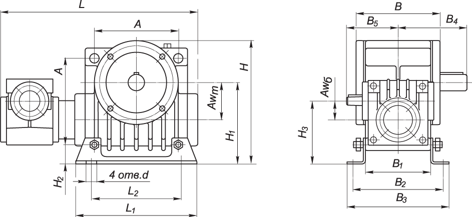 Редуктор Aw т Aw б B B 1 B 2 B 3 B 4