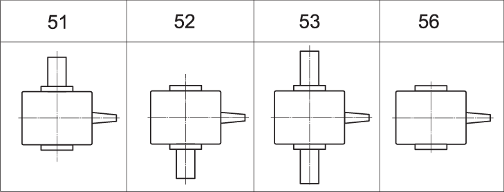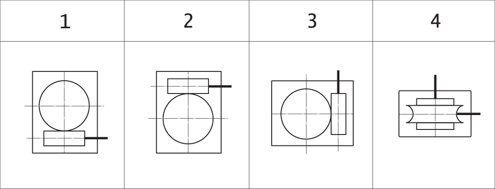 Варианты сборки редукторов Ч2 (вид сверху, червяк под колесом)